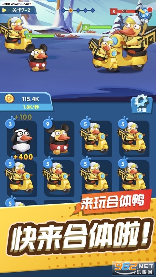 来玩合体鸭游戏手机安卓版是一款超有趣的放置合成类游戏,超多不同外观的可爱鸭子等你来合成完成,拖动合成解锁更高等级的鸭子,更强大的实力轻松击败大BOSS。放置玩法轻松挂机赚金币,拖动合成升级小鸭子,不断成长变强迎接更多的挑战