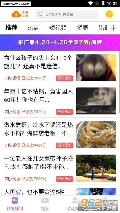 新人下载即送1元现金奖励,转发文章单价永久6毛,上线推广前三天单价提升至7毛,支持导入文章