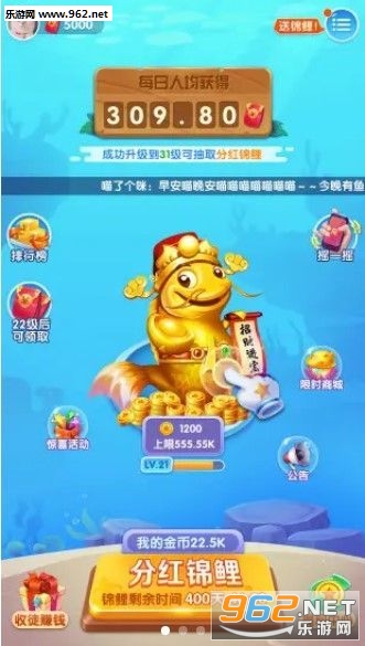 一款手机养鱼赚钱平台,这款软件拥有简单的赚钱方式,只需要按照要求完成规定的任务即可,每天登陆还送红包福利,提现也快捷,喜欢就来962下载吧!