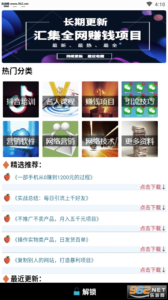 《网赚基地学习版》是一款专业网赚教学app,这里为用户提供了各种各样的赚钱模式,海量的赚钱项目和资讯等你来查阅,感受手机赚钱的便利,有需要的小伙伴还在等什么?快来962下载吧!