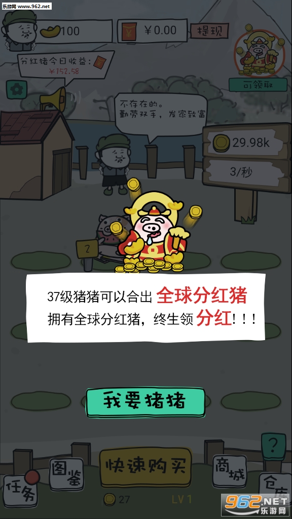 《买得起的五花肉赚钱版》是一款2026年4月全新上线的合成赚钱软件,这里用户注册成为会员就能领取分红猪,通过合成的方式来赚钱,等级越高奖励越好,提现也轻松,感兴趣快来下载吧!