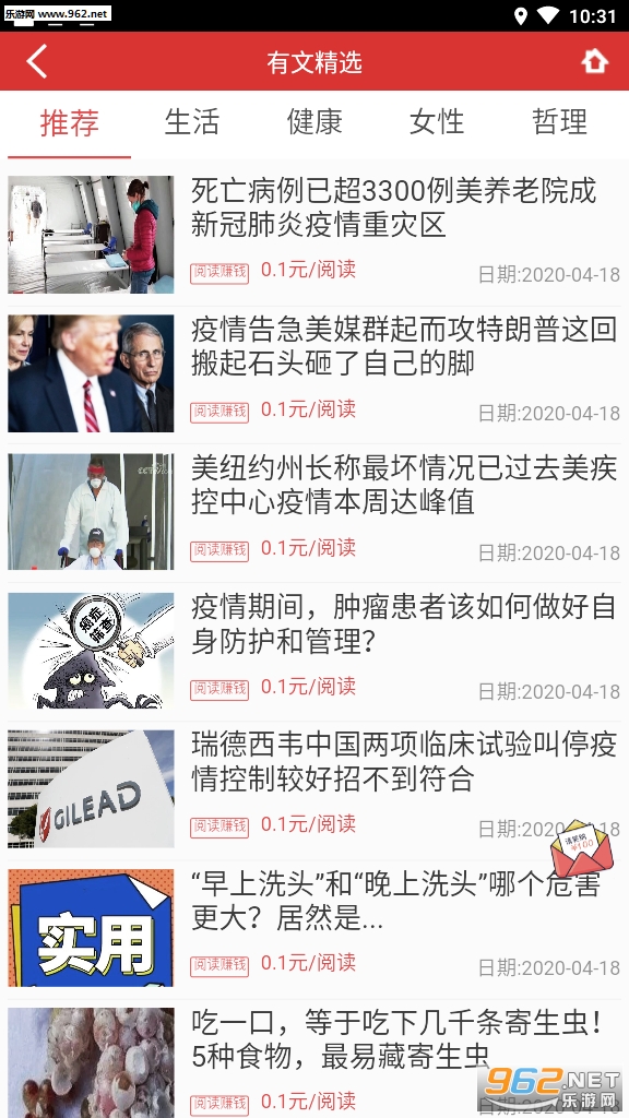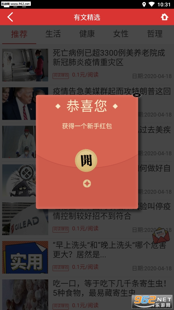 完美的掌上赚钱平台,每天除了在平台上阅读资源来赚钱以外还可以推广给好友,双方都可以活动红包奖励,适合在家打发无聊的时间,喜欢就来962下载吧!