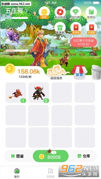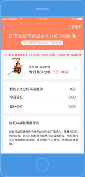 多多西游是一款西游合成游戏,玩家通过合成西游中的妖怪、收徒弟获取广告现金分红,无充值入口,斗战胜佛[20%永久分红]大唐出发到达终点灵山必获得,五大神兽合成必获得,两只37级合成概率获得,类似旅行世界,在基础上增加[紫金葫芦][筋斗云] [邀请卷] 等功能玩法