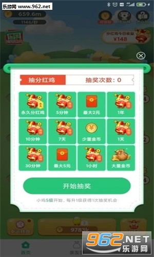 3、每天30次抽奖次数,可获得大量福气值和金币奖励,福气值用来升级小鸡