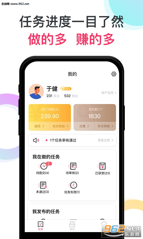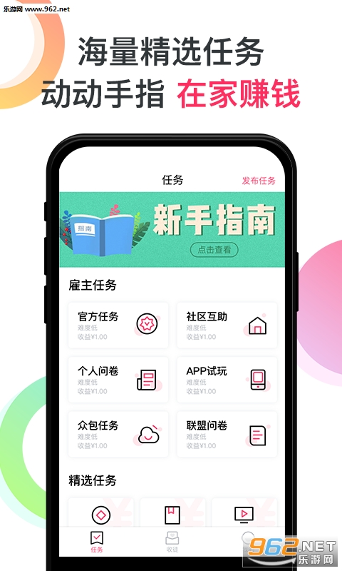 一款完美的掌上赚钱app,简单的赚钱模式,轻松赚钱玩法,不但拥有非常多的赚钱任务等你来完成,提现也轻松,喜欢就来试试吧!