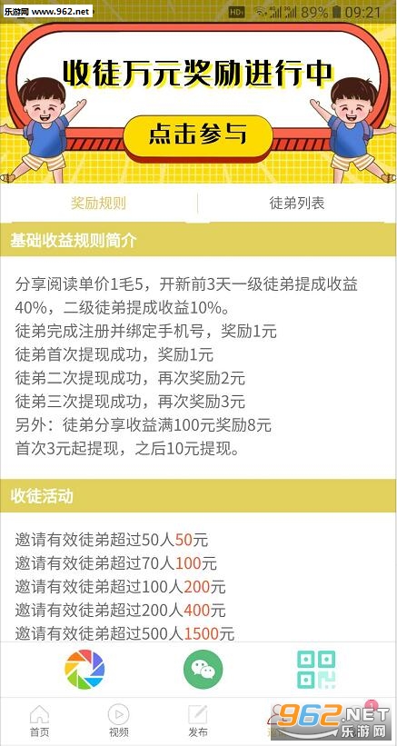 邀请有效徒弟超过50人50元