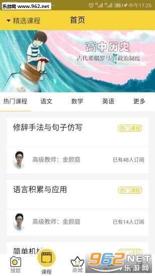 一款轻松的线上教学软件,通过直播或者视频的方式进行线上教育,在家也能提高成绩,还有专业名师1对1在线知道,感兴趣快来962下载吧!