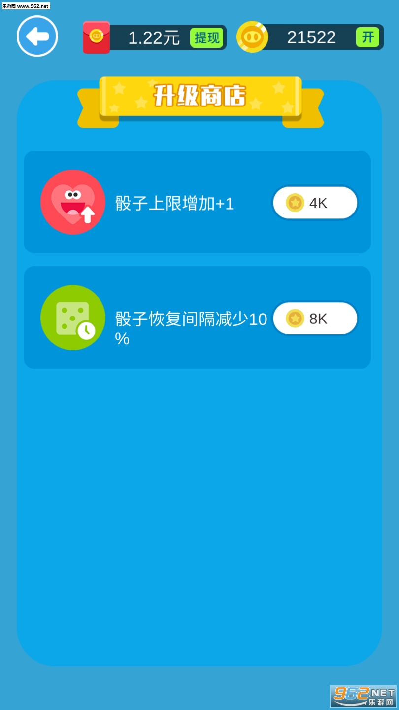 1、使用你在游戏中获得的金币,你可以对你的小猪技能进行升级,让他投色子的上限次数增加。