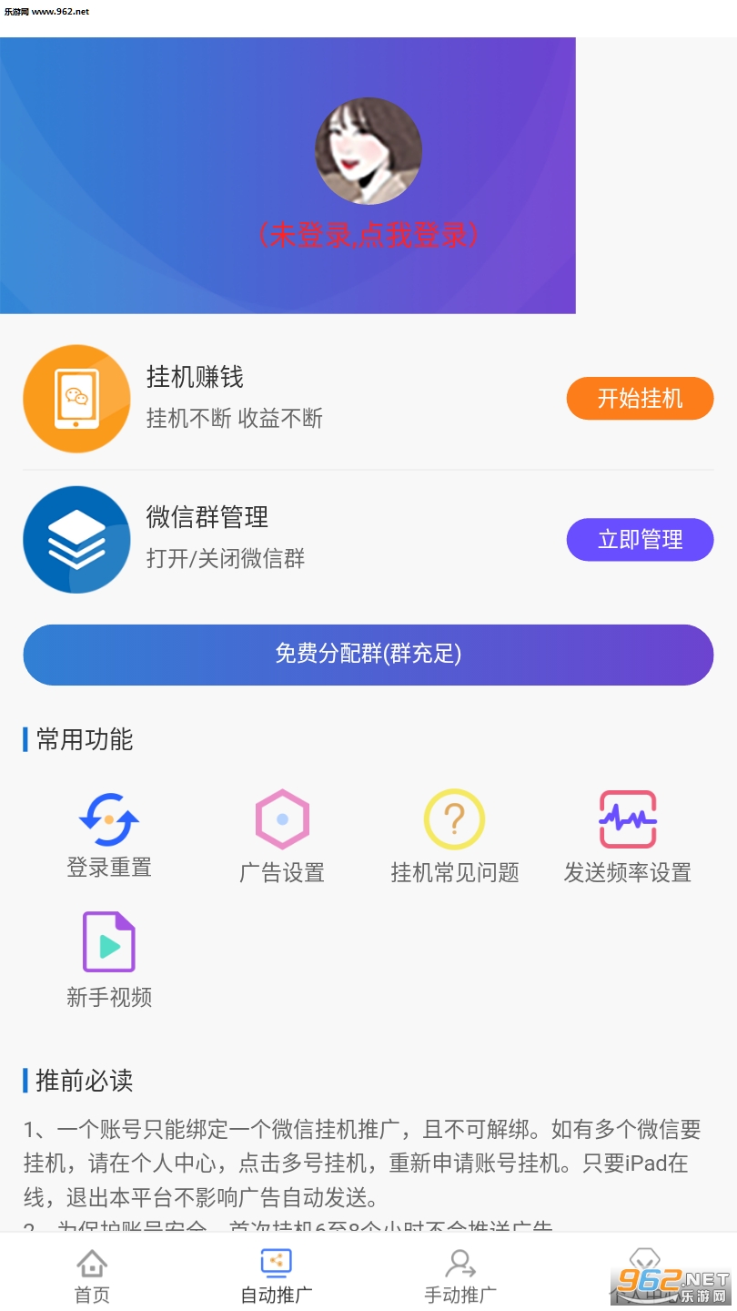 3、最给力平台支持, 挂机推广不仅效率惊人,每日还有数十元挂 机费用领取,更有免费群分配。