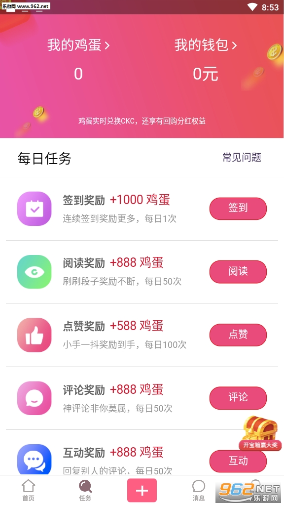 1、每天上线做任务可获得鸡蛋奖励,鸡蛋可兑换红包;