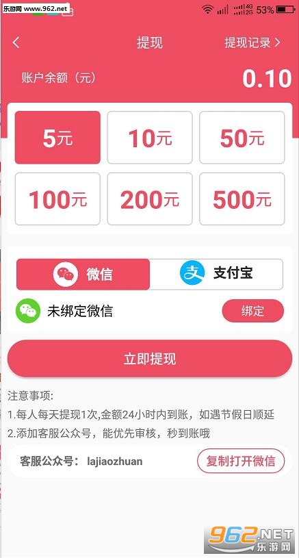 提现稳定:首次2元提现,后续10元起,200元以内皆是秒到账