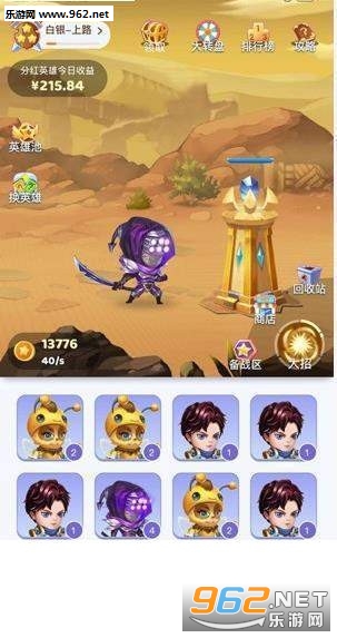 2、下载登录后可以通过看视频、幸运转盘、加速等方式获得金币,金币可以购买英雄,将两个同等级的英雄合成可以把它的等级提升一级,升到38级并将它们合成有机会获得分红装备,拥有分红装备可以享受平台的广告收益分成,每天分得300元左右。