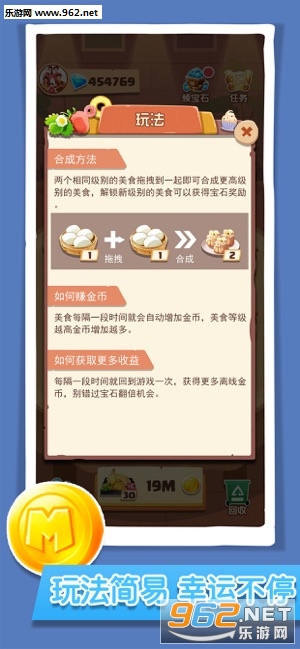 1、美食合成升级娱乐益智游戏,通过不同的合成解锁更多不同类型的美食;