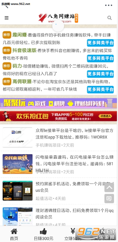 《八角网赚站APP》是一款给用户提供赚钱方式的网赚平台,用户可以根据自己的喜好在平台上选择自己喜欢的网赚方式,让用户用自己喜欢的方式来轻松赚钱,海量的赚钱方式随意选择,喜欢赚钱的小伙伴们赶紧下载试试吧。