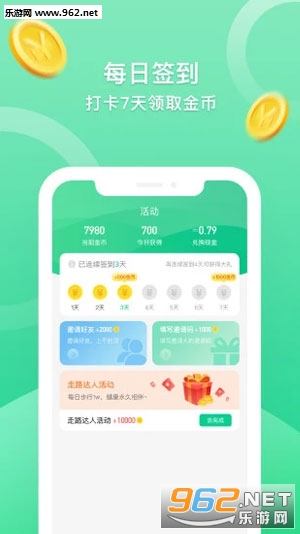 6、绿色行走即可获得健康和奖励,让每一步都充满乐趣。