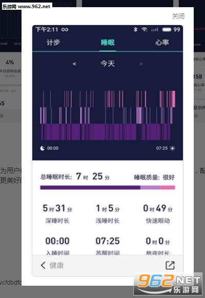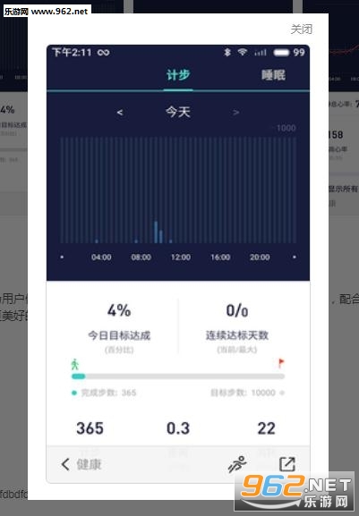 3、记录每天的睡眠情况,图文展示每天的深睡时间、浅睡时间和清醒次数。统计每周、每月的睡眠趋势。