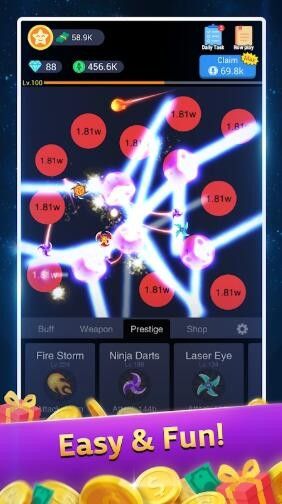 2、赚取金币和钻石去购买更多高阶的刀剑,去完成射击冒险。