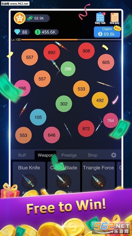 2、每次完成挑战任务都能积累一定的金币,去购买升级刀剑。