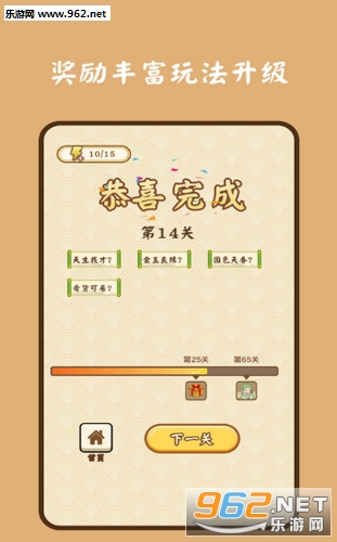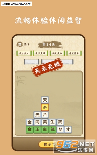 2.有上千个成语在这里组成的关卡,这会很考验玩家的记忆能力,还有反应;