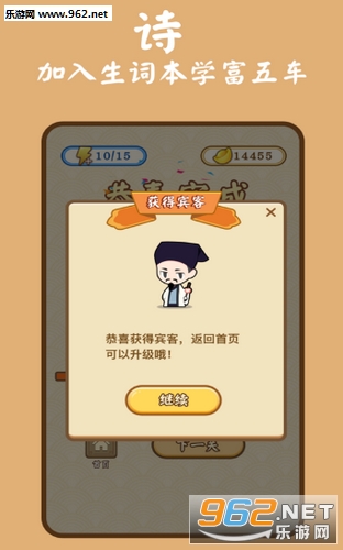诗词连连消游戏是一款玩家们都会很熟悉的和诗词有关的答题游戏,将会摇身一变成为小秀才,你的目标就是成为当地的状元,所以从现在开始就要努力了,不断的回答成语问题,帮助自己不断的进阶,总有一天能够实现你的愿望,简单有趣的玩法适合所有人,加入进来在娱乐的同时学习新知识。