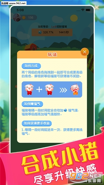 《养猪赚大钱红包版》是一款全新上架的手机养猪赚钱平台,在这款软件中,用户可以通过简单的合成养猪的玩法来获得收益奖励,小猪猪等级越高福利越好,喜欢的老哥快来962下载体验吧!