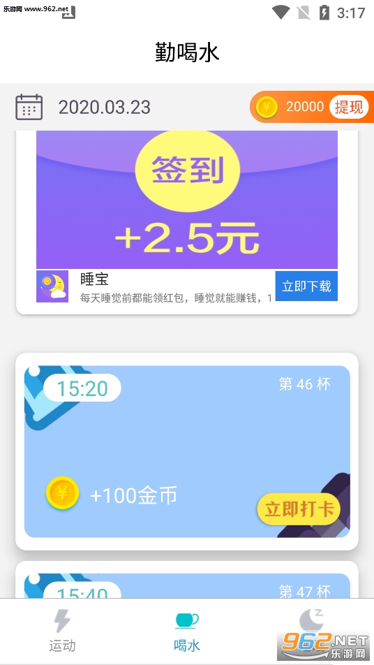 【喝水赚钱】每天喝水,20分钟一次,轻松打卡,领取金币奖励!