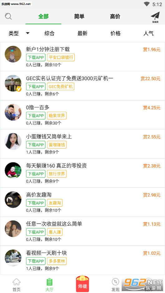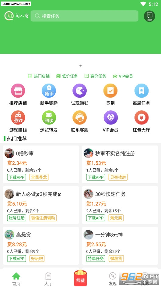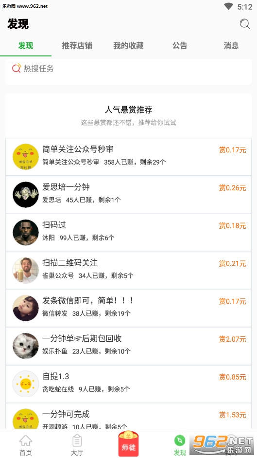 2、“发现”频道人气悬赏推荐,优质任务实时推荐给你