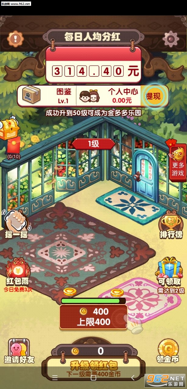 3、赚取金币可以用来扩大你乐园规模,当然这些金币到达一定数量也是可以解锁现金红包。