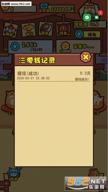 2、下载登录后可以通过加速、转盘和看广告视频获得福气值,然后再用福气值购买猫咪并将它们合成升级,每升两级都可以获得现金红包。