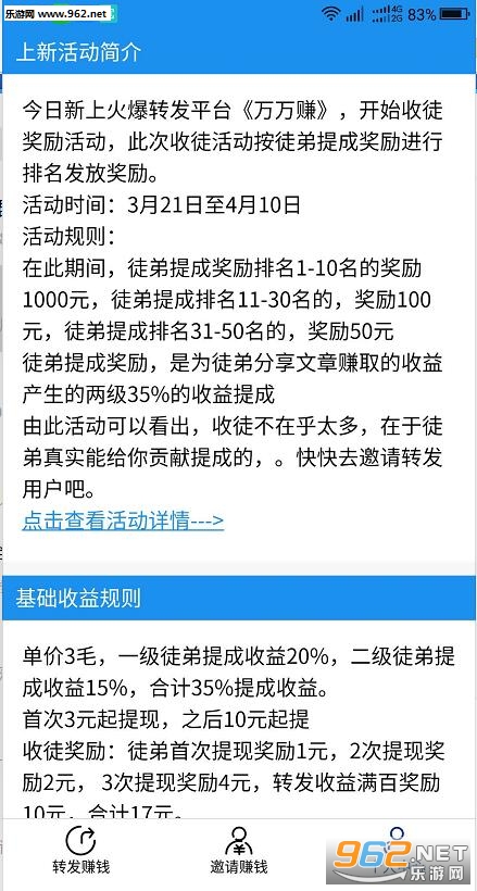 总体来说是一款非常不错的转发赚钱软件简单的阅读转发就可以赚钱,简单的一部手机轻松的点击即可,白给的钱为什么不要呢,提现还十分的简单,喜欢的亲们赶紧下载吧。