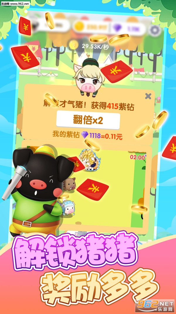 3.两两合成解锁高级猪仔,活动开启后还有无数的大奖会从天而降。