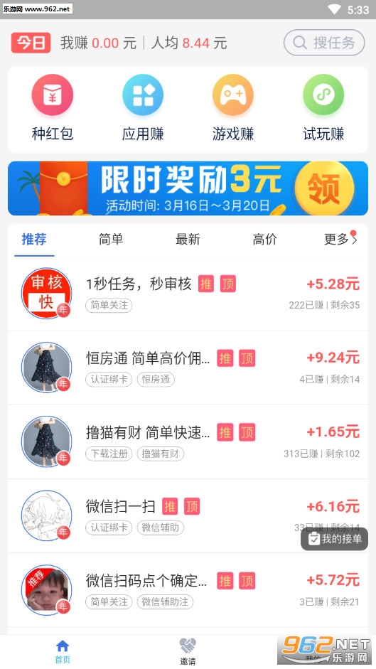 多任务兼职赚钱平台,应用试玩、悬赏任务、游戏试玩