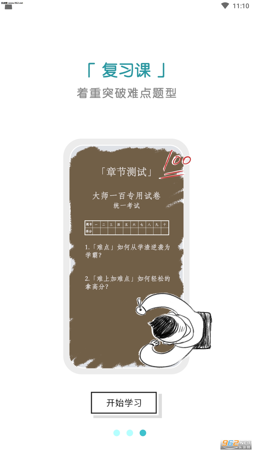 《大师100手机版》是一款很不错的线上学习软件,软件的功能还是很不错的,简单易懂使用起来还方便,丰富的方法和资源能帮助学生们更好的进行学习,还有更加完善的教学管理,感兴趣的亲们赶紧下载吧。
