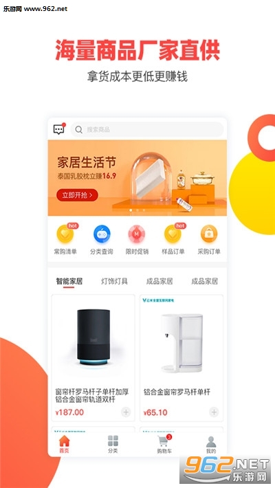 1、家居建材原厂采购:提供家居建材全品类多达千万级SKU商品在线原厂价采购。