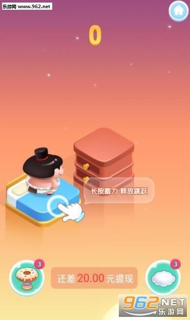 完美重合跳一跳红包版是一款跳一跳类型的休闲娱乐的挑战性赚钱游戏,游戏的游戏游戏玩法十分的趣味性,小伙伴们在游戏中,只务必依据手指的点一下,接着根据间隔,进行蓄力时间的计算,常常小伙伴们获得成功的闯过一定的团本,全是获得大红包的奖励,而且,小伙伴们在游戏中,将大红包累积20元后,就可以 进行取款操作过程了,钟爱的小伙伴们还不赶紧来赚钱吗!