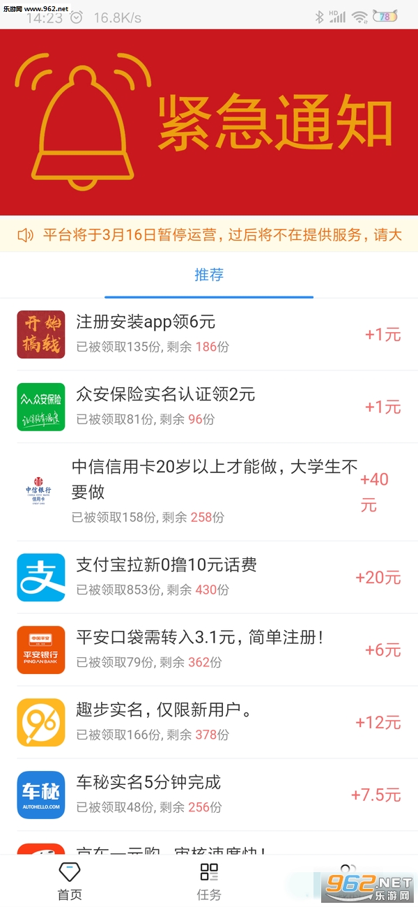 《悬赏吧红包版》是一款做任务赚钱软件,这里有很多发布的任务,而且每天都会有更新,不用担心任务不足的情况,用户每天只需要花费一点点的时间去完成领取的任务就可以获得佣金奖励,利用零碎时间就能赚取零花钱。