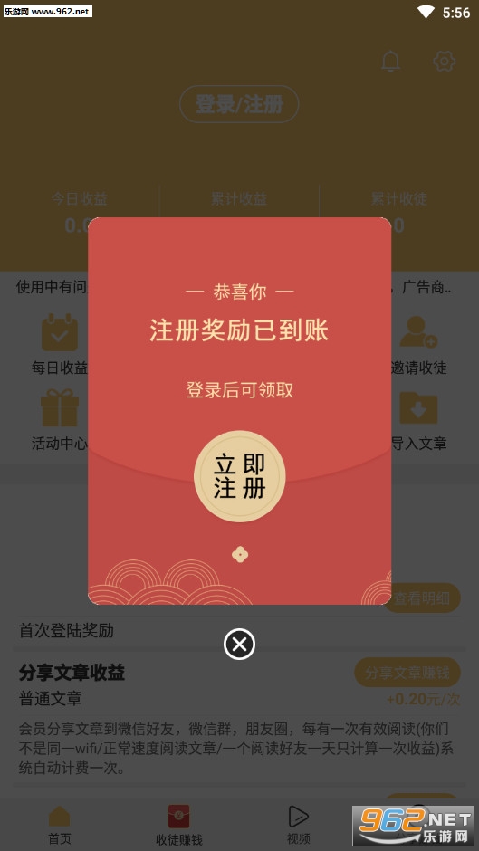 1、首次登陆APP奖励1元,转发文章/视频被阅读单价0.5元,支持导入文章