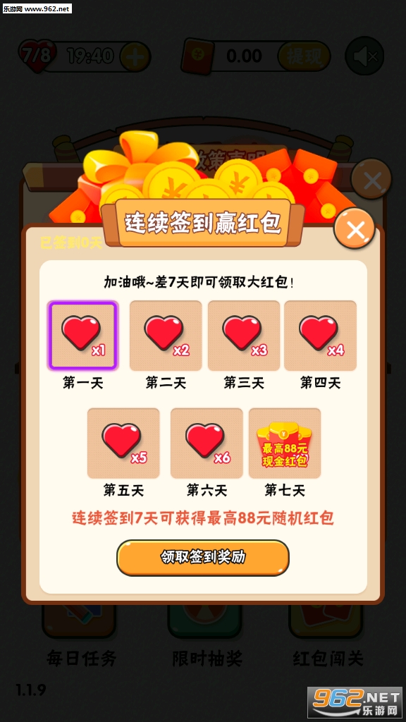 一款轻松的手机答题赚钱app,简单的赚钱模式,在游戏中获取红包,没有任何门槛,提现轻松简单,感兴趣快来试试吧!