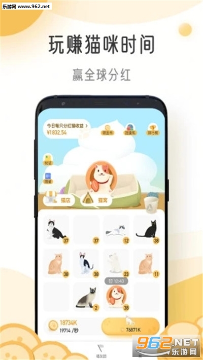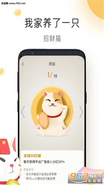 全球分红:撸猫合成到38级,有机会每天获得20%广告费的全球分红;