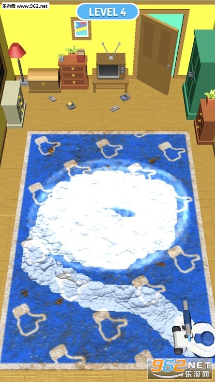 2、慢慢将地毯擦拭出来,只要全部变得一尘如洗,就能完成关卡的挑战,难度并不会很高;