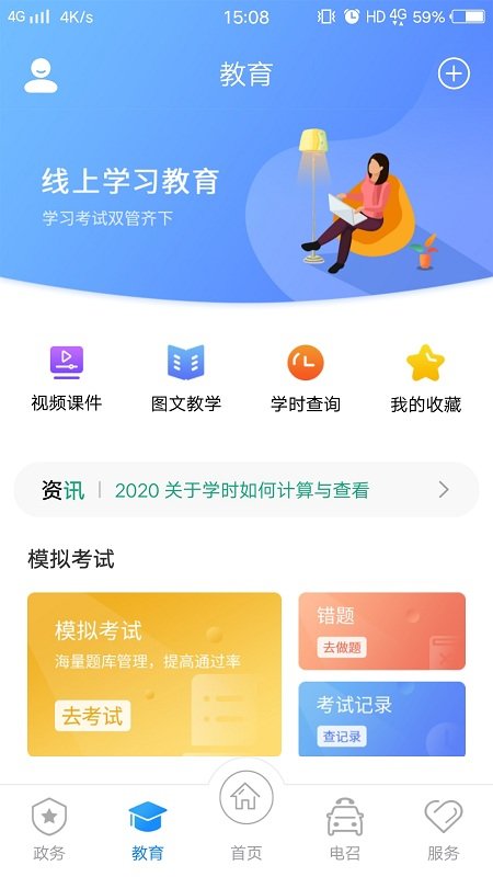 ·提供大量教学内容,在线学习,丰富题库尽在其中,还提供大量政务办理功能。