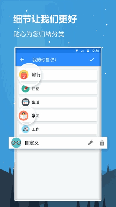 《蜗牛记事app》是一款手机记录软件,记录生活中的点点滴滴,随手备忘录,支持快速编辑,将重要的事情随手记录下来,可以写日记、做笔记、记倒数。