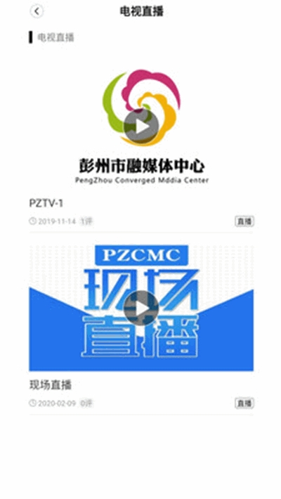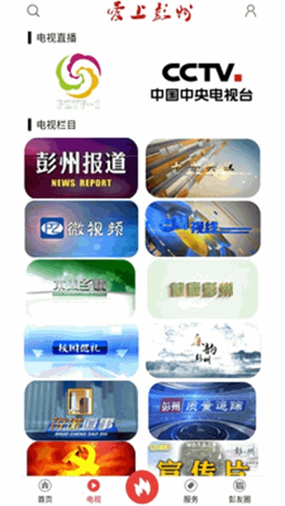 用户可以通过此软件观看彭州市融媒体中心各频道直播及各栏目点播