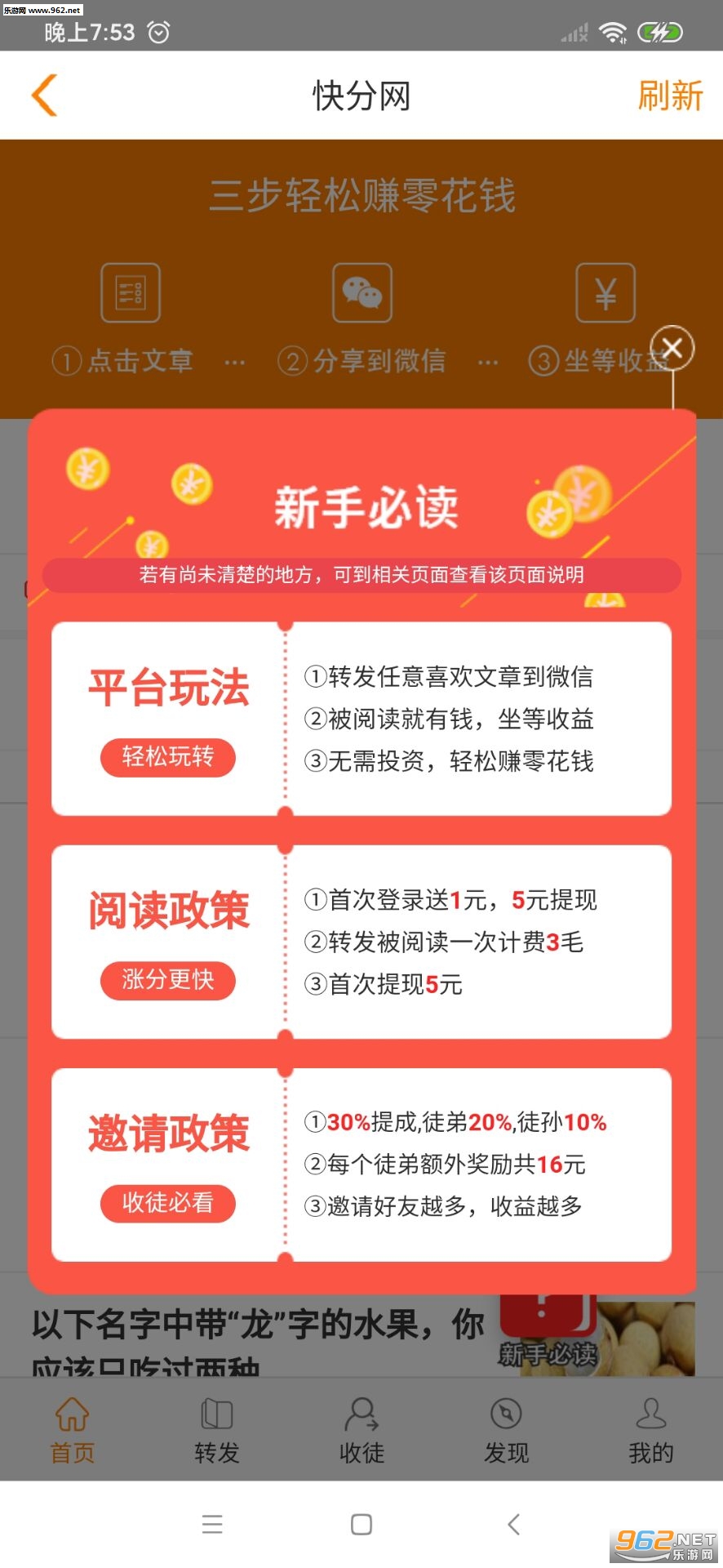 《快分网app》是一款优质趣味的掌上赚钱服务平台,大家在折胯快分网app中可以通过转发平台文章赚钱,打造出一款优质的赚钱新方式,转发即可快速的赚海量现金,5元即可提现!
