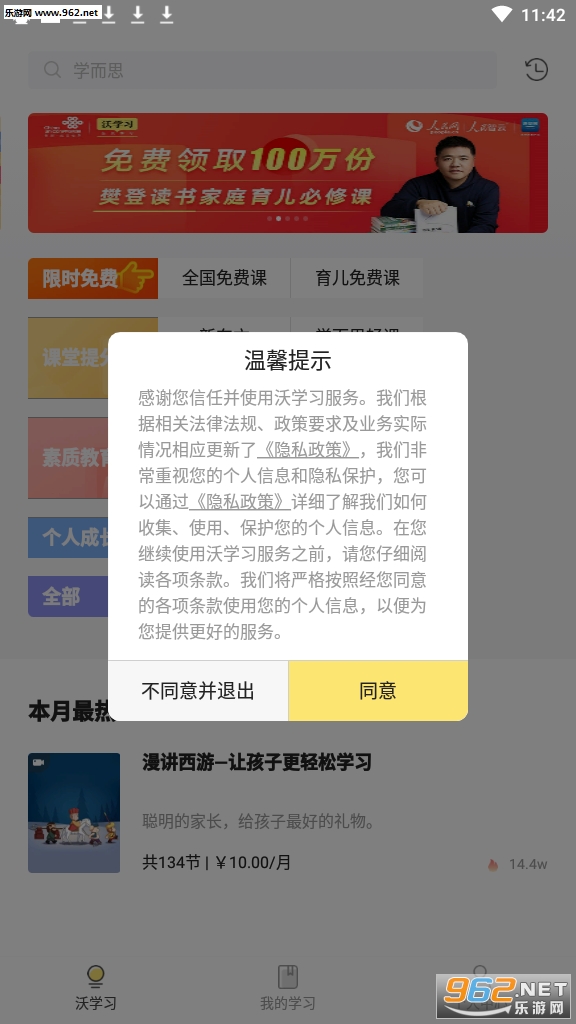 沃学习是一款由中国联通推出的在线教育app。主要面向家庭和学生用户。