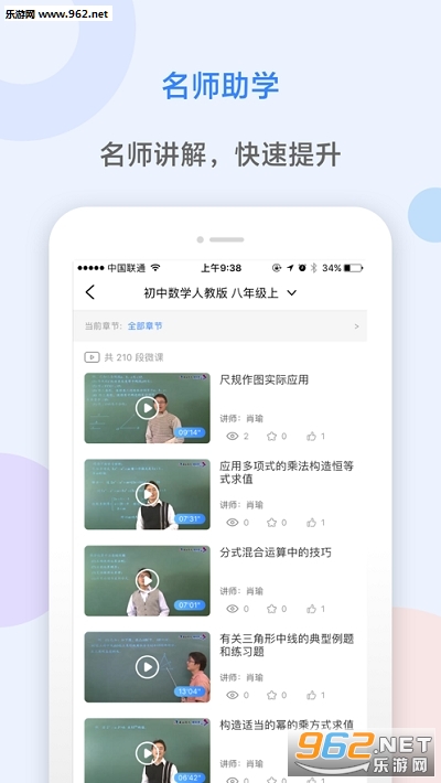 平台上拥有海量的名师资源,让用户在家中就可以享受到名师的专业解答,让用户对自己薄弱的环节可以做着重的学习和训练,让自己可以更有效的进行学习。