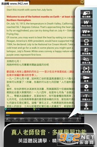 1.专业英语老师原声发音,可逐句配合声音与文字同步学习。