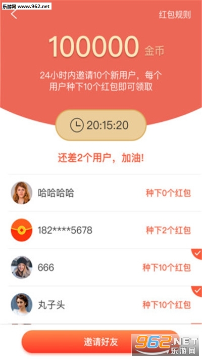 红包庄园每天发放10个新红包,每天您种下红包,20分钟成熟后您来收红包,邀请好友一起玩。