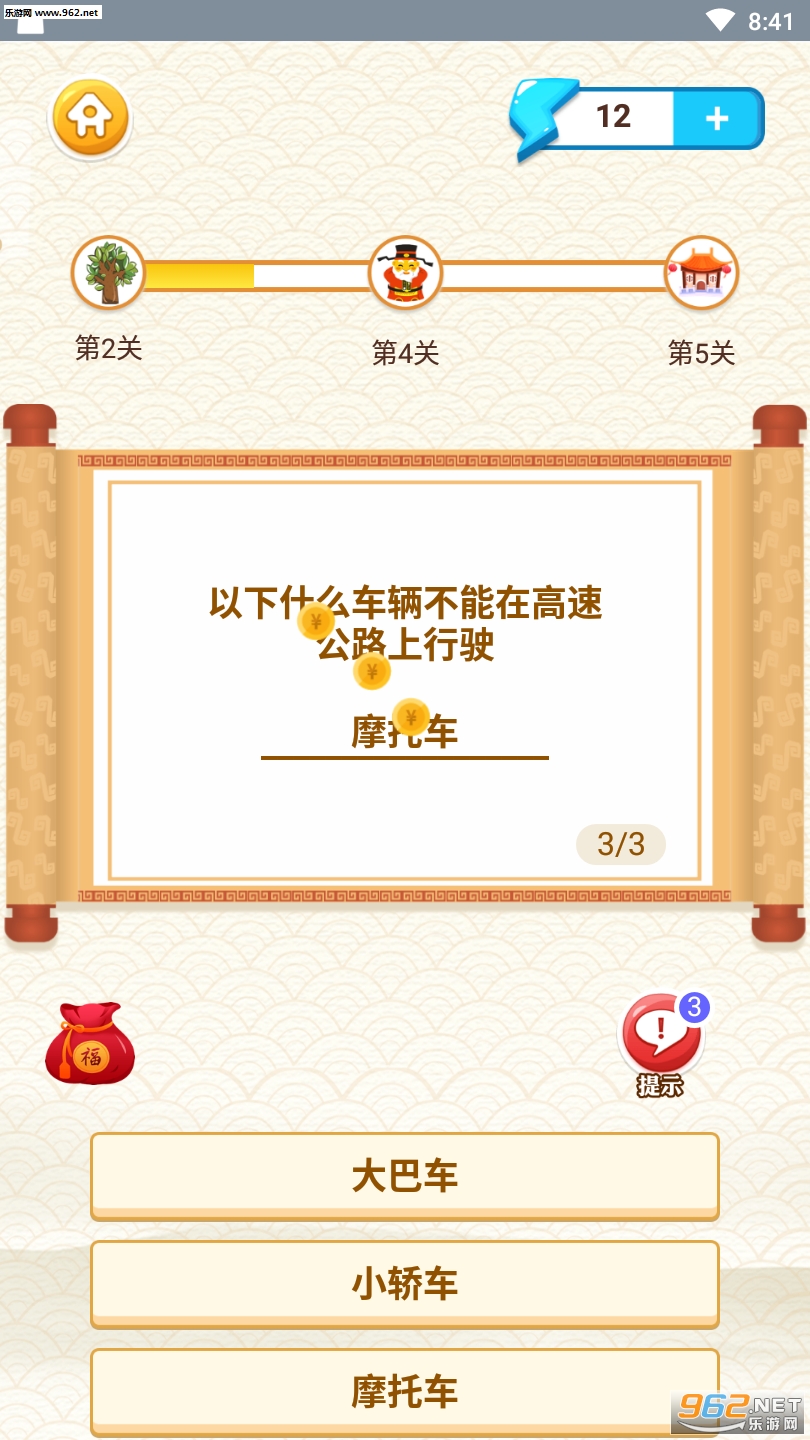 1、闯关模式下玩家在本关卡里要选出正确的答案才能够继续下一关的内容;