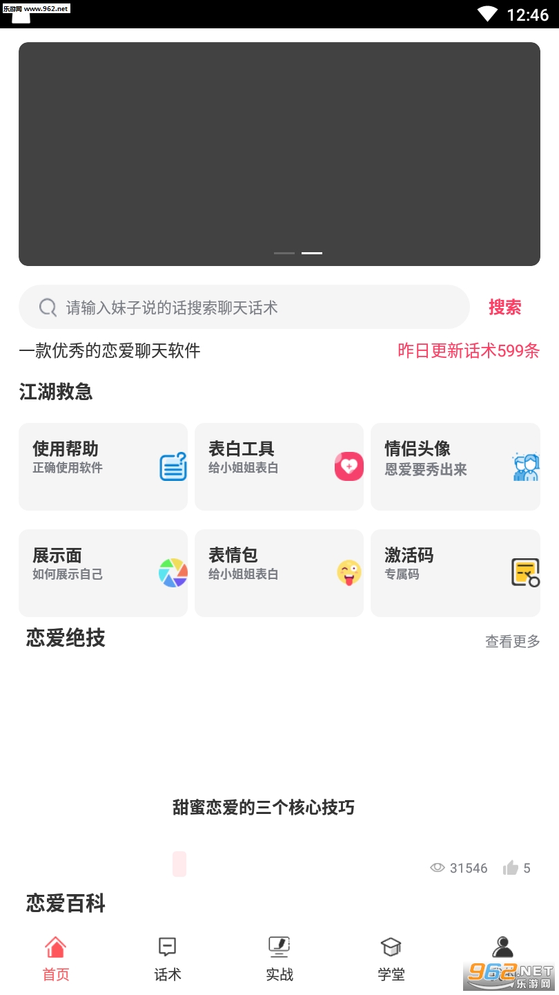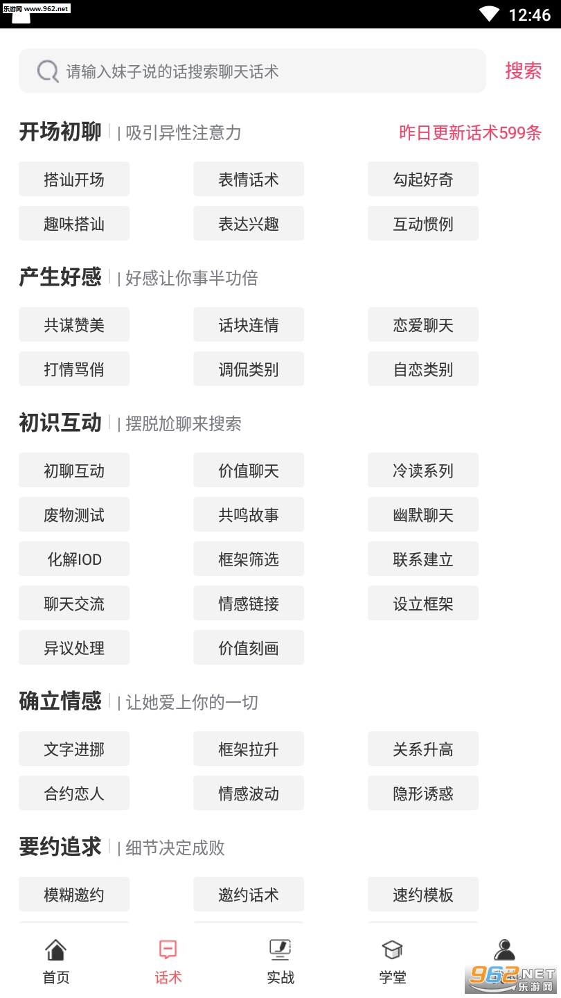 《恋爱聊天术APP》是一款优质好用的线上教学恋爱脱单的技巧平台,平台上有许多优质的资源可供公户进行学习,无论用户是练习还是希望实战,都可以进行教学。并且用户还可以选择看文字或者直播的形式进行学习,帮助每一位用户轻松脱单。